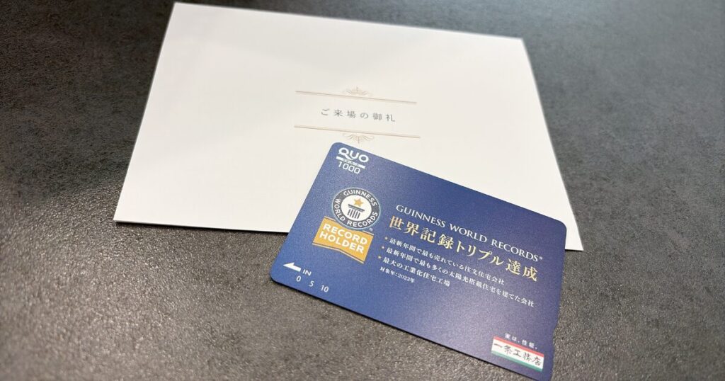 - 展示場に招待状を持っていくとQUOカード1,000分プレゼント!