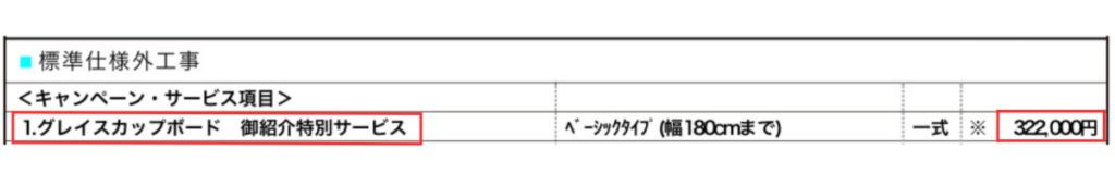 32万円相当のカップボードが無料で付けることができました。